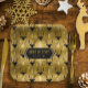 This paper plate features a trendy pattern of deer head silhouettes with curving antlers, stylised arrows and tiny snowflakes in black and white on a textured-effect background in shades of gold. Optional 'Happy Holidays' text and a label have been provided to add your name and/or other text. Search ID861 thru ID864 to see additional colour options and other products in this modern, Christmas design set.