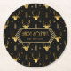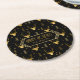 This paper coaster features a trendy pattern of deer head silhouettes with curving antlers, stylised arrows and tiny snowflakes with a textured-effect in shades of gold on a black background Optional 'Happy Holidays' text and a label have been provided to add your name and/or other text. Search ID861 thru ID864 to see additional colour options and other products in this modern, Christmas design set.