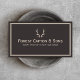 Deep, brown background accented with gold deer antlers logo. A smart, classic look. Add, arrange and re-size text as desired.