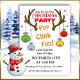 Fun and festive "Pop,Clink, Fizz", Christmas party invitation featuring ornaments hanging from deer antlers.