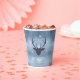 This paper cup features deer antlers silhouette and snowflakes in dark navy on a textured-effect, sky blue background. Optional 'Happy Holidays' text and a template have been provided to add your name and/or other text. Search ID861 thru ID864 to see additional colour options and other products in this modern, Christmas design set.