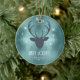 This ceramic ornament features deer antlers silhouette and snowflakes in dark teal on a textured-effect, watchet blue background. Optional 'Happy Holidays' text and a template have been provided to add your name and/or other text. Search ID861 thru ID864 to see additional colour options and other products in this modern, Christmas design set.