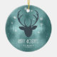 Deer Antlers Silhouette & Snowflakes Teal ID861 Ceramic Tree Decoration