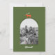 A mod reindeer sits atop an arched family photo on this earthy green and orange holiday card.