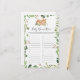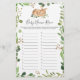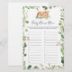 Deer themed baby shower name race game card features a watercolor deer illustration and watercolor greenery eucalyptus garland and elegant handwritten style font.