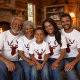 A red and black plaid deer head silhouette, this design features a red and black plaid pattern on the silhouette of a buck's head. Set upon a white t-shirt, place your order today!