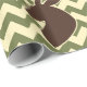 A deer buck head silhouette with antlers with a chevron pattern in green and brown. Great for those who love hunting and wild animals.