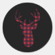 Deer Buck Silhouette Red Plaid Matching Christmas Classic Round Sticker
