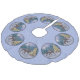 Deer & Christmas Tree Winter Blue Faux Linen Tree Skirt