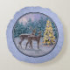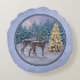 Deer & Christmas Tree Winter Blue Round Cushion