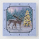 Deer & Christmas Tree Winter Blue Square Wall Clock