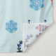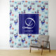 A Christmas tapestry with a repeating pattern. Illustrated with a pair of blue scandinavian deer wearing red scarves. With decorative markings on their bodies. As well as a trio of red and blue christmas trees with a star on top. Fancy snowflakes sprinkled around. A square layered over top with your personalised monogram initial and name.