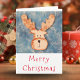 Deer Head Blue Winter Ice Merry Christmas Holiday Card
