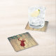 Deer Head with Antlers on Wood Planks with Leaves Square Paper Coaster