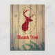 Party thank you postcard with a rustic style. Designed with a deer head with antlers, made of red plaid. A fancy oval frame surrounds the image. Faux wood planks give it an outdoorsy country feel.