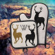 Oven mitt and pot holder set for the outdoorsman who hunts. Deer and antlers design in black, tan and grey. The pot holder has a template to add a first name initial in a grunge font.