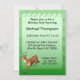 Birthday Party invitations for Deer Hunters with leaf background and a buck head in the corner. Make your favourite Deer Hunter' Birthday a special treat.