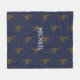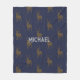 Hunting themed fleece blanket with place for his name in the centre. Dark blue colour with tan buck images that make a pattern over blankets that come in three sizes.