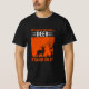 Deer Hunting Family Tree t-shirt features a black silhouette deer on an orange background with orange and white text that reads My Family Tree Has a Deer Stand In It!