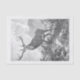 Beautiful black and white vintage illustration of deer in the high mountains. A male deer with antlers is followed by two other deer on the side of a mountain with mountains in the distance.