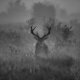 A lonely stag in the early morning misty wilderness. From the Deer In The Mist Collection.