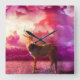 Deer In the Pink Clouds Square Wall Clock