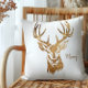 Deer/ Merry/ Gold Glitter/ Cream Cushion