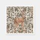 Deer on decorative oak damask pattern in brown napkin
