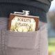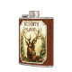 This rustic country custom flask design is perfect for anyone who loves animals / nature or hunting. It shows a vintage image of a buck deer / reindeer with large antlers, recolored to add brightness and clarity, nestled between pine tree boughs. The background is made to look like a slightly-torn paper attached to a wood grain. Add your name to the top to customise. The word "flask" can also be changed. See the matching set in our store under "Bar Sets / Matching Home Sets." These are perfect for an old west / rustic Americana / log cabin look.