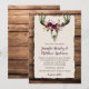 Deer Skull Dark Purple Floral Bouquet Barn Wood Invitation