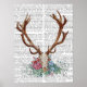 Deer Skull With Flowers Poster