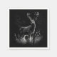 In this black and white drawing, a majestic deer with antlers is depicted standing in the middle of a peaceful and serene natural setting. The deer is drawn with intricate details and a realistic approach, capturing the essence of its wild beauty.