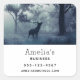Business stickers with a photo of a regal deer with antlers standing in a shadowy forest among sunlit trees. Snow falling all around.