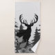 Deer emerges from pine trees and is surrounded by wildflowers in simple wildlife design.