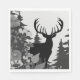 Deer emerges from pine trees and is surrounded by wildflowers in simple wildlife design.