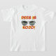 The t-shirt feels and looks great quality, a good thick cotton. It will be a little big for my son, but that means he will be able to wear it and not out grow it too soon. The print was as described on the order when personalised. True size, shape and colour T-shirt- thanks.