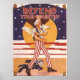 Vintage poster from WWII of Uncle Sam rolling up his sleeves. Flag motif is in the background. "Defend your country" at top