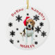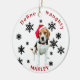 This adorable Beagle dog ornament captures the playful spirit of the holidays! Featuring a cute Beagle dog wearing a Santa hat, the ornament is adorned with delicate black snowflakes scattered across a crisp white background. The festive phrase "Define Naughty" is written in bold red text, adding a cheeky touch. Perfect for dog lovers, this ornament brings charm and humour to any Christmas tree while showcasing a beloved Beagle. Ideal for gifting or decorating, it’s a delightful way to celebrate the holiday season with your furry friend. Customisable front and back.