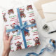 The pattern on this festive Christmas wrapping paper is of a cute French Bulldog wearing a Santa Claus hat. He is tangled up in a string of Christmas tree lights. The image is repeated across the surface, with red and green text that says "Dear Santa, Define NAUGHTY". Your own custom greeting and signature is in red and green, also.