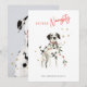 This playful “Define Naughty” Christmas card features a watercolor Dalmatian tangled in festive lights and mistletoe, surrounded by gold star accents on a crisp white background. A charming and funny holiday card for dog lovers, perfect for spreading smiles with a dash of mischief and holiday cheer.