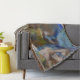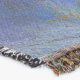 A quality printed throw has its advantages. This is a much finer weave throw than its loopier cousins, and though lighter, it is worth the investment for custom room accessorizing. The back is much prettier than the typical brown, and the fringe on the long sides very vivid, the selvage nicely done. Before photographing, I washed the throw in cold water, delicate, with a thicker woven throw the same size. On tumble dry low, this throw was dry in half the time as the other. This is a very practical quality if you use throws for furniture covers or to wrap up in frequently. The sleekness of the fabric makes it a great layer for accenting or protecting without the feeling of sitting on too much stuff. Perfect for napping or when you feel a light chill coming on. The color printing is beautiful and on this fabric, matched the design and color of my Photoshop image. This is an advantage for blending room fabrics and colors. The fringe on the short sides prints the colors from the design image and therefore varies from the side fringe. I streaked a white fractal line through the plaid pattern to give the illusion of weaving. This printed as crisp as an illusory thread, and put some white in the short side fringe, showing another advantage of print vs loomed- for artistic purposes, line lines, detail, and color integrity can be planned and preserved. My loomed throws have color limitations and more of a needlepoint texture. Print throws reproduce an exact image. The throw felt a little stiff straight out of the package, but this went away in the first delicate wash. Of course I searched the wash water for ink or bleeding and there was none.