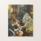 Degas Four Dancers puzzle. Oil painting on canvas from 1900. French impressionist Edgar Degas painted multiple ballet paintings featuring four dancers. This version is an enchanting depiction of four girls with strong hard outlines that gives the painting a lovely dream like quality. A great art gift for fans of Degas, ballet paintings, and dance paintings.