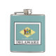 Well made flask, a little better than I had expected. Flask came in clear plastic box which gave it a nice presentation when I took it out of the zazzle packaging. Image is not printed on flask but on sticker. Don't know how this will hold up I haven't used it yet. This would make a Great gift! I plan to purchase more for friends! Cheers. I thought a little brighter than computer. Very crisp, writing wasn't