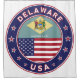 Badge of Delaware with flag of Delaware and flag of USA colours, rounded shape.