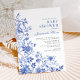 This chinoiserie-inspired design features elegant botanical florals and greenery in delft blue and white. Personalise the invite with your details and if you want to further re-arrange the style and placement of the text, please press the "Click to customise further" button.