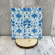 A beautiful decorative ceramic tile featuring delft blue floral artwork.