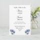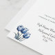 Announce your special day with this unique customisable Delft Blue Tulip Photo Wedding Invitation. This elegant, two-sided invitation features the classic blue and white floral border on the front for all your ceremony details. The back offers a beautiful layout to include your favourite cherished photo along with the striking tulip art. Personalise the invitations with the wedding date May 5, 20XX, the note See our beautiful photo on the back, or the couple's names Anna Johnson and James Jefferson.