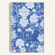 Delft Blue White Chinoiserie Bird Peonies Monogram Notebook