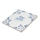 Blue and white tile reproduced on a smooth surface 4.25" or 6" ceramic tile. Perfect for interior tile wall accents, backsplashes, fireplace surrounds, bathroom and showers walls, kitchens and craft projects. Not intended for outdoor use. Our tiles are copies of costly authentic original antique tiles. Suggestion: Order one tile to review before placing a large order.
