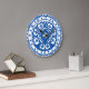 Looking for a final finishing touch for your kitchen or blue and white decor room? This awesome clock uses similar pattern and colours to the classic Delftware or Delft china. Cobalt blue and white are the colours . This stunning wall clock would look great in a kitchen, bedroom, or living room. It's easy to read, inexpensive and makes a great housewarming or other gift.